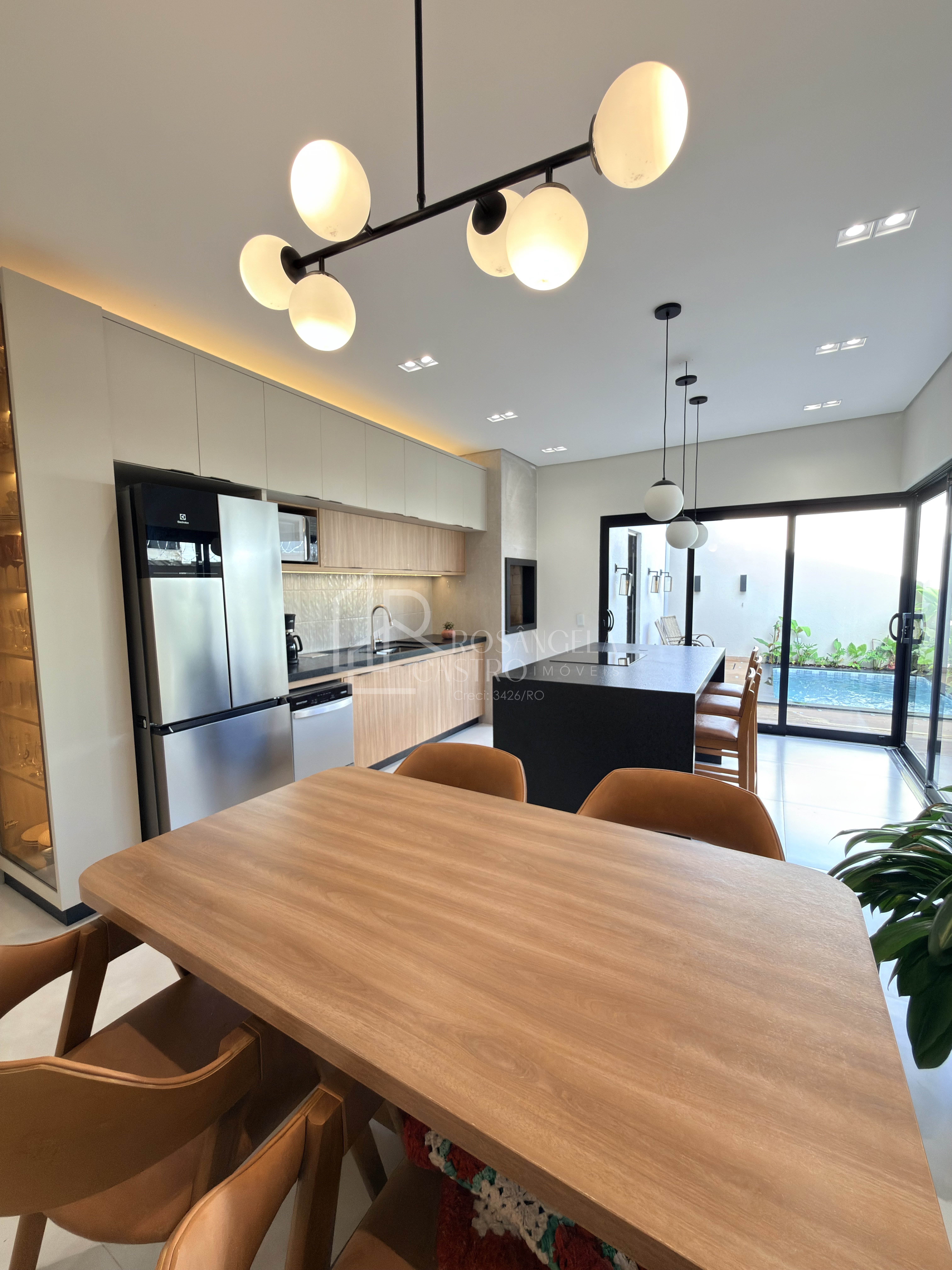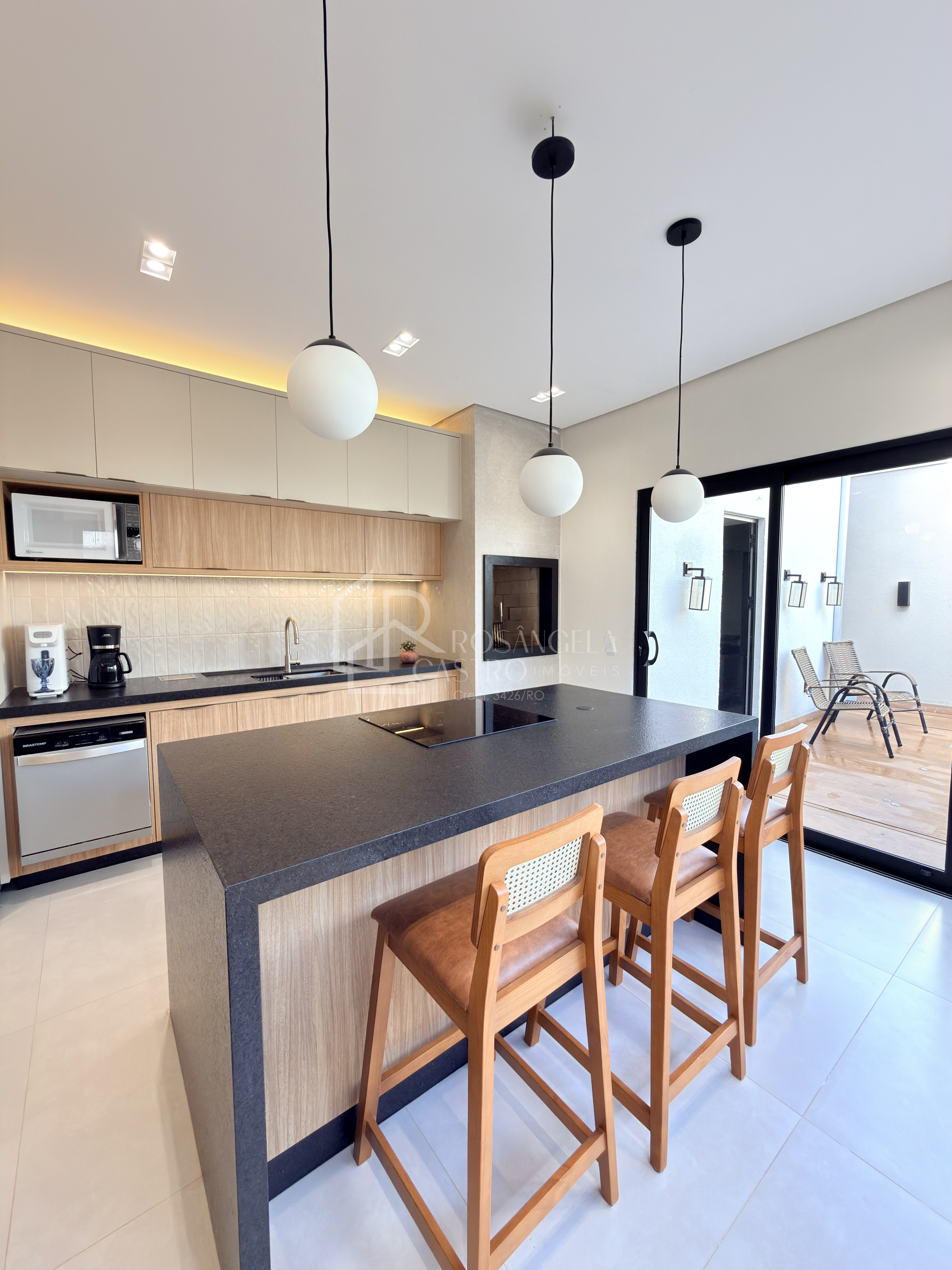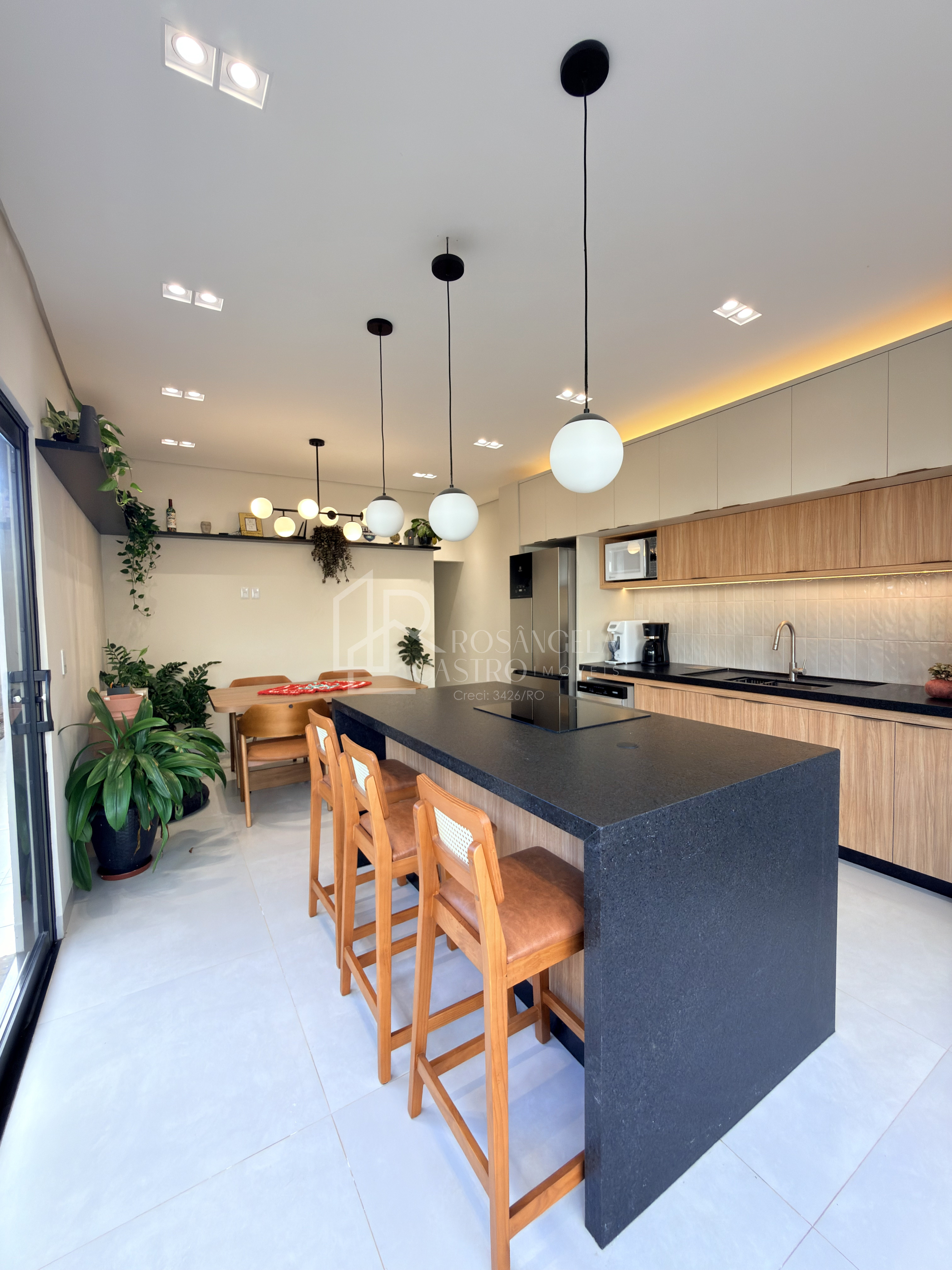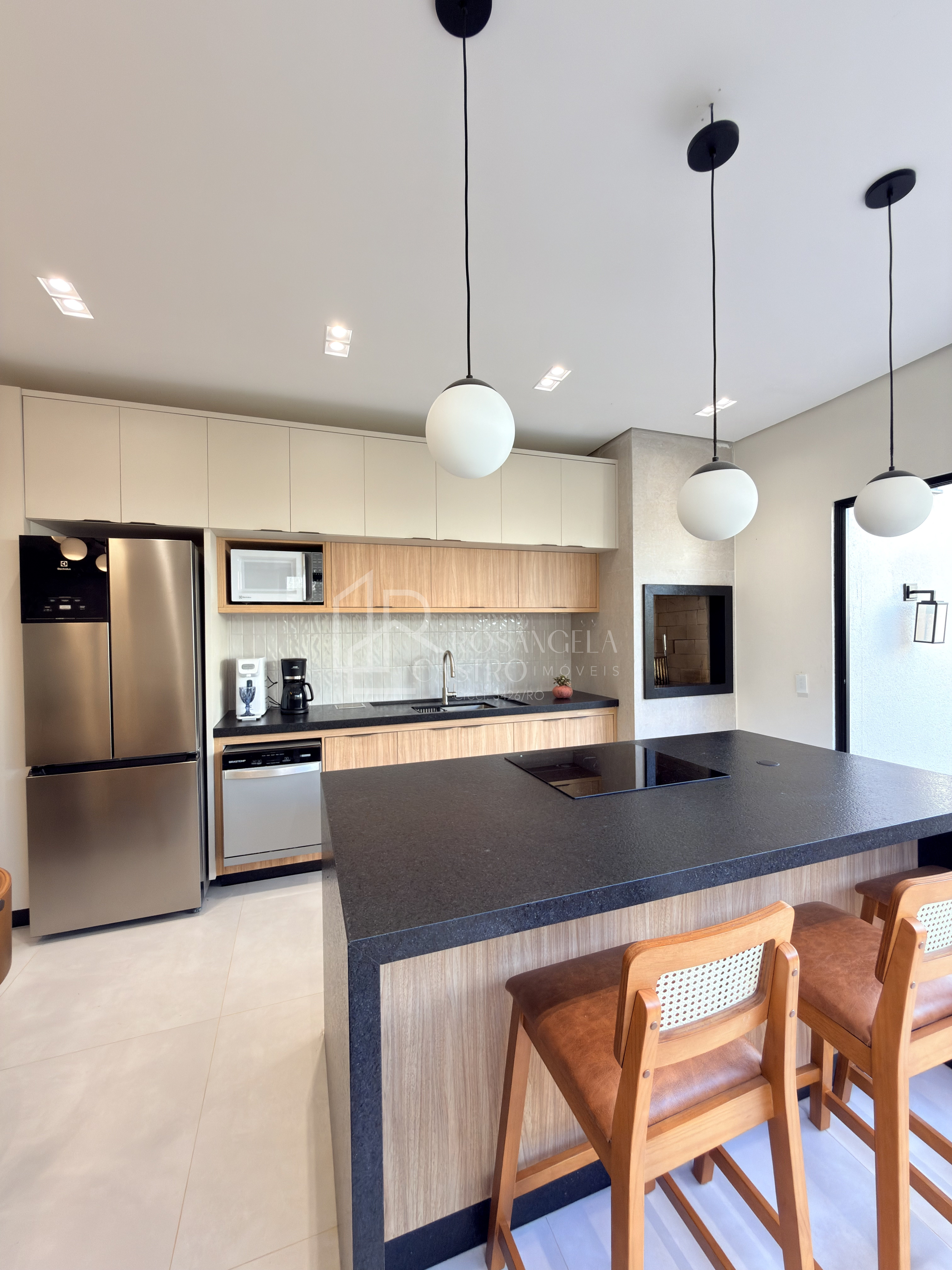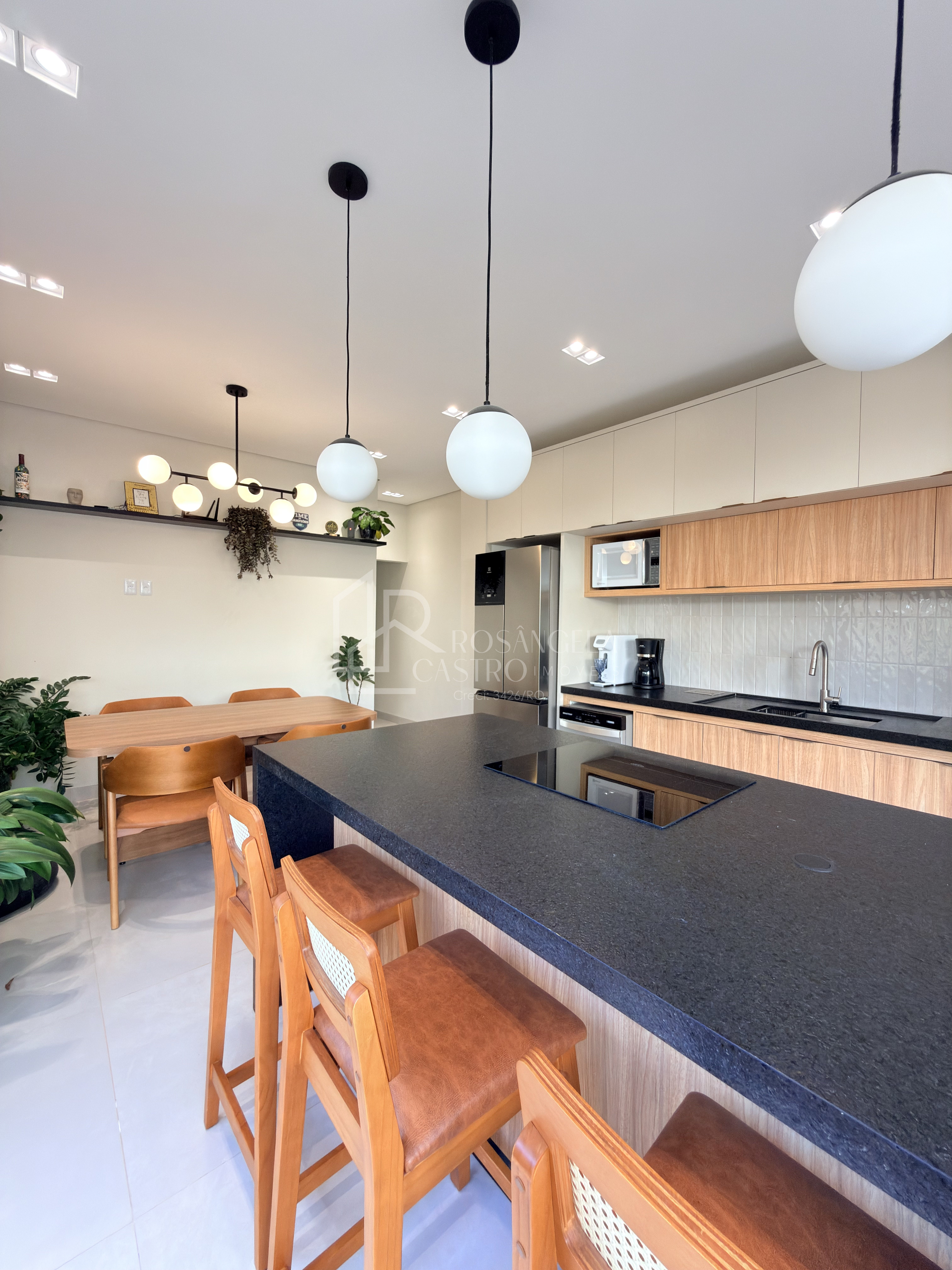 Cozinha com ilha e móveis planejados
