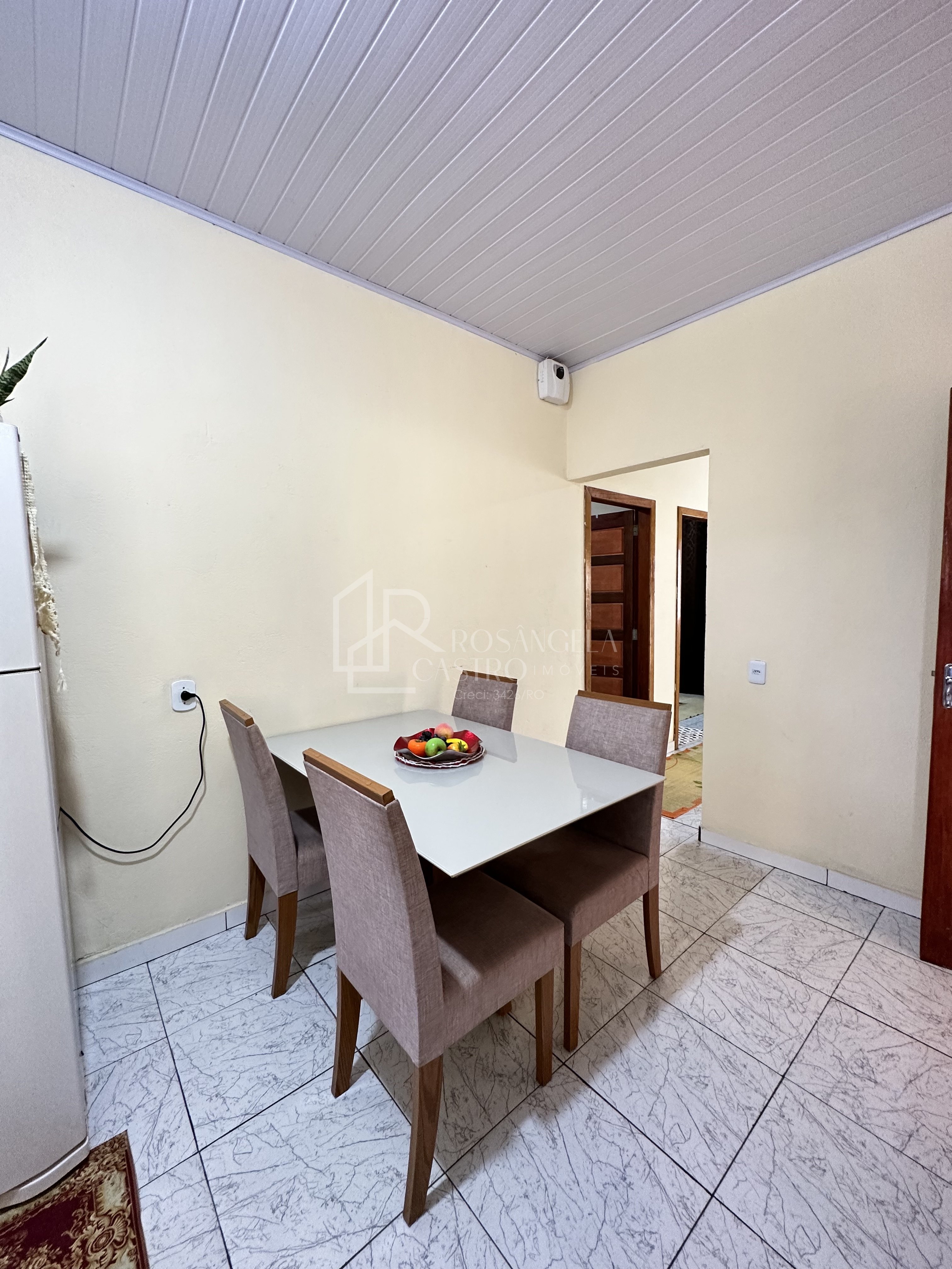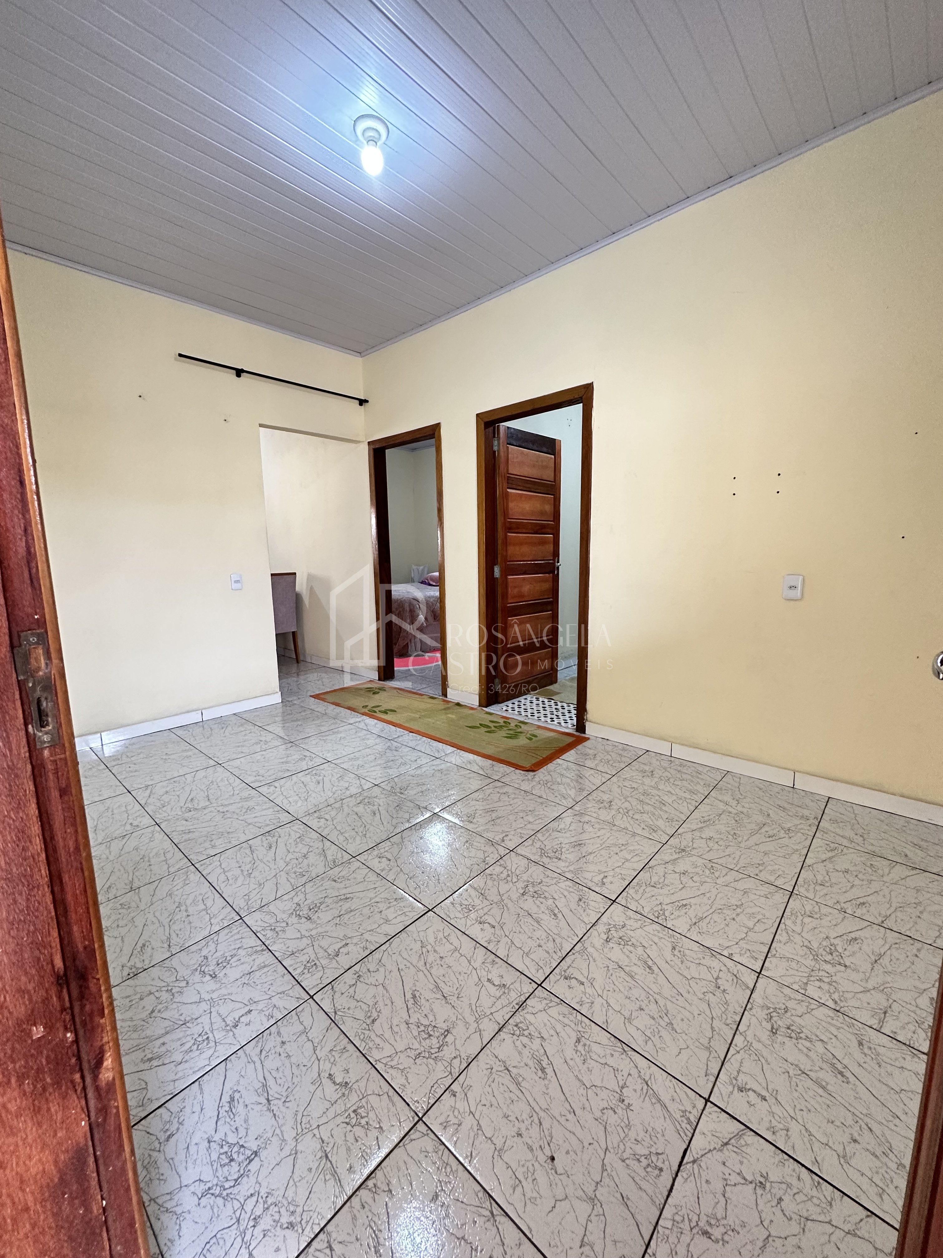 Casa com: Sala de estar, dois quartos sendo uma suíte, banheiro social e cozinha.